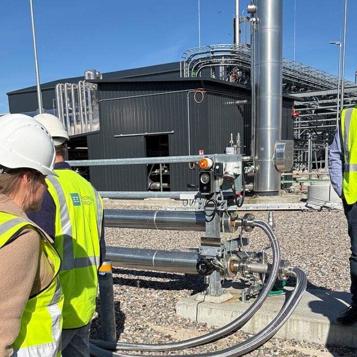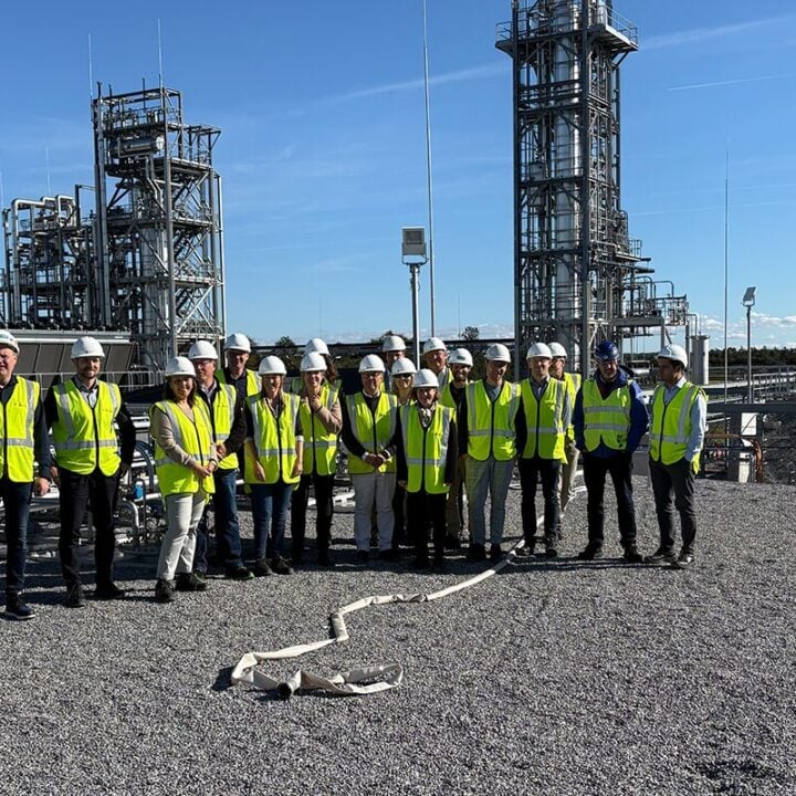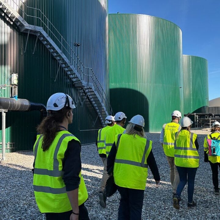 In Tønder besuchte die Gruppe die Biogasanlage von Copenhagen Infrastructure Partners – eine der größten Europas. Mehr als 930.000 Tonnen organische Abfälle werden hier jährlich in 41,1 Millionen Nm³ erneuerbares Biogas umgewandelt. Das im Prozess entstehende CO₂ wird von Ammongas, einer Tochter von European Energy, abgeschieden, aufbereitet und per Truck zur E-Methanol-Produktion nach Kassø transportiert.